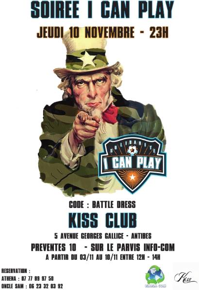 Les membres du projet tuteuré I CAN PLAY ont organisé une soirée au Kiss Club, à Juan-les-Pins, dans le but de récolter des fonds pour l’association avec laquelle ils sont en partenariat : les Blouses Roses. Cette association lutte contre la solitude des personnes âgées et des malades, enfants ou adultes, par des animations ludiques et créatives.