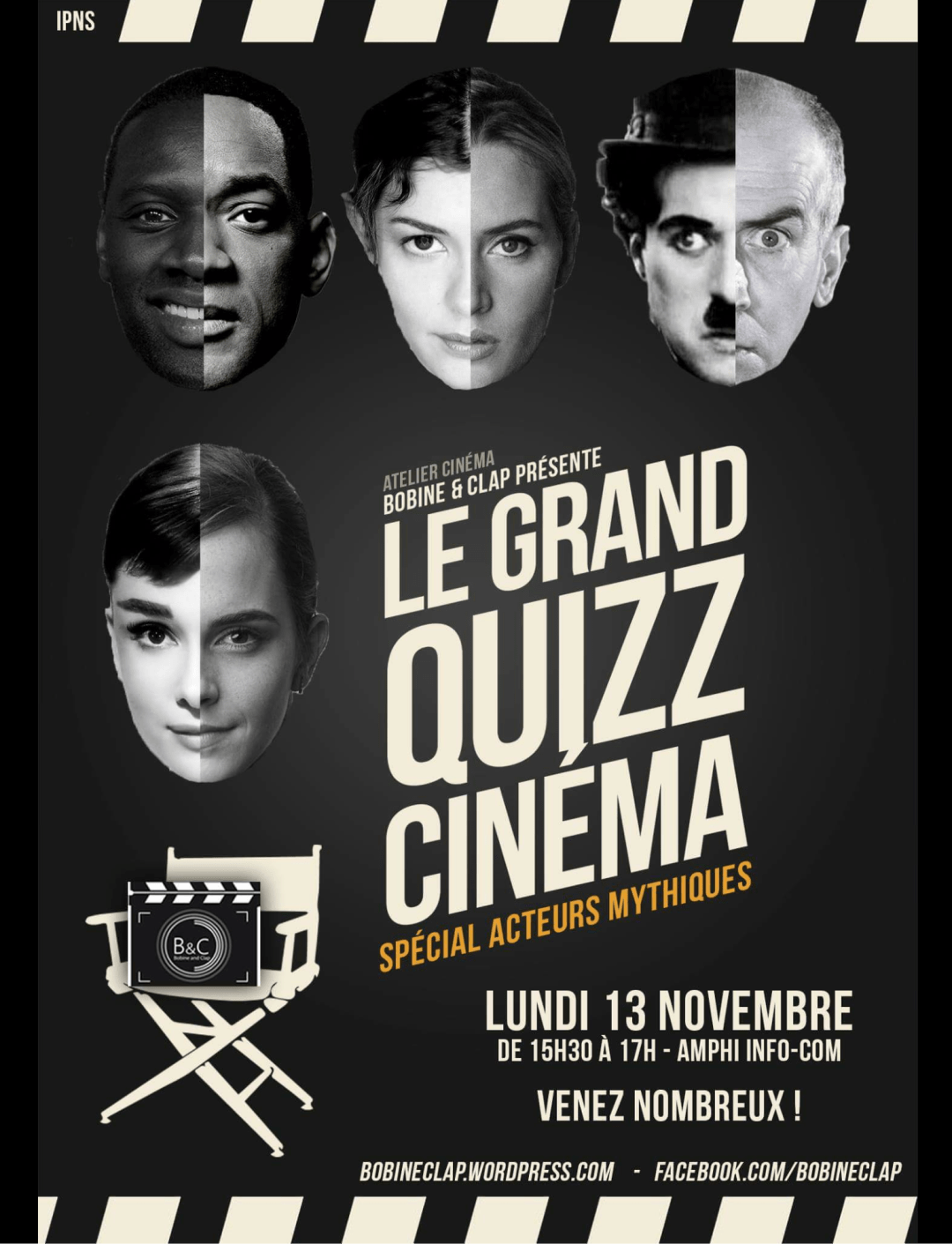 Lundi 13 novembre, les membres du projet tuteuré Bobine&Clap ont réuni les étudiants de première et deuxième années pour un grand quizz. Cette année, le thème portait sur les grands noms qui ont marqué l’industrie du cinéma : une excellente occasion pour les étudiants de mettre en valeur leur connaissance du 7e art.