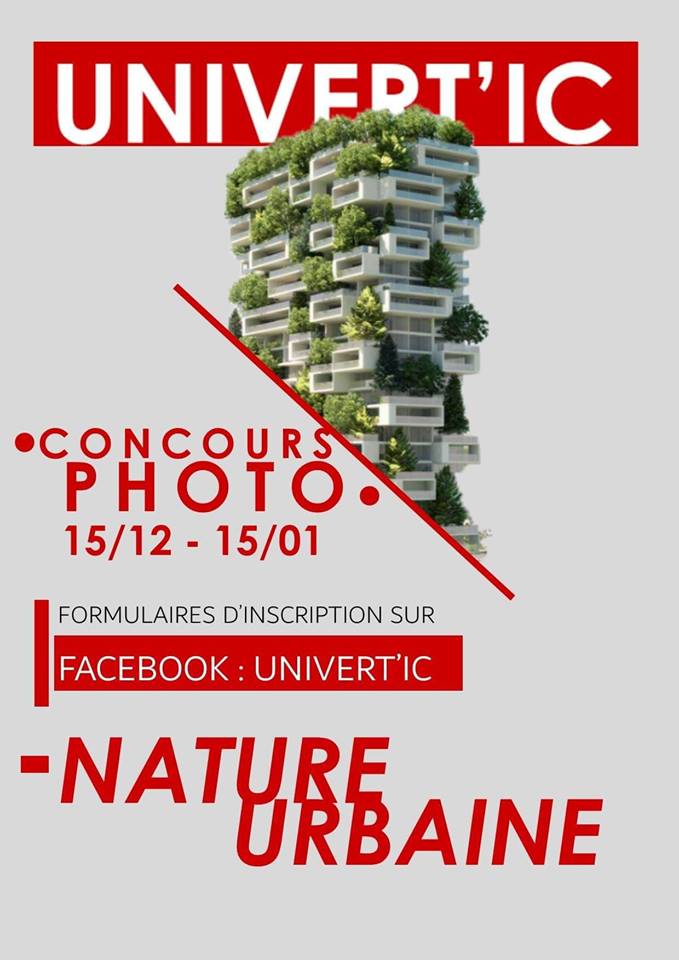 Le concours a pour thème « la nature urbaine ». Son but est de promouvoir la nature au cœur des quartiers et de mettre en avant la biodiversité en ville. Pour y participer, rien de plus simple : après avoir rempli le formulaire en ligne sur l’événement « Concours photo » que vous trouverez sur leur page Facebook Univert’IC, il vous suffit de faire une photographie dans n’importe quelle ville et de l’envoyer par mail au projet avant le 15 janvier 2019.