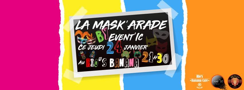 Jeudi 24 janvier le projet Event’IC donne rendez-vous à tous les étudiants info-com au Rio’s Banana au Golf-Juan à partir de 21h30 jusqu’à 2h00 du matin pour une soirée Mask’arade qui s’annonce des plus mystérieuse.